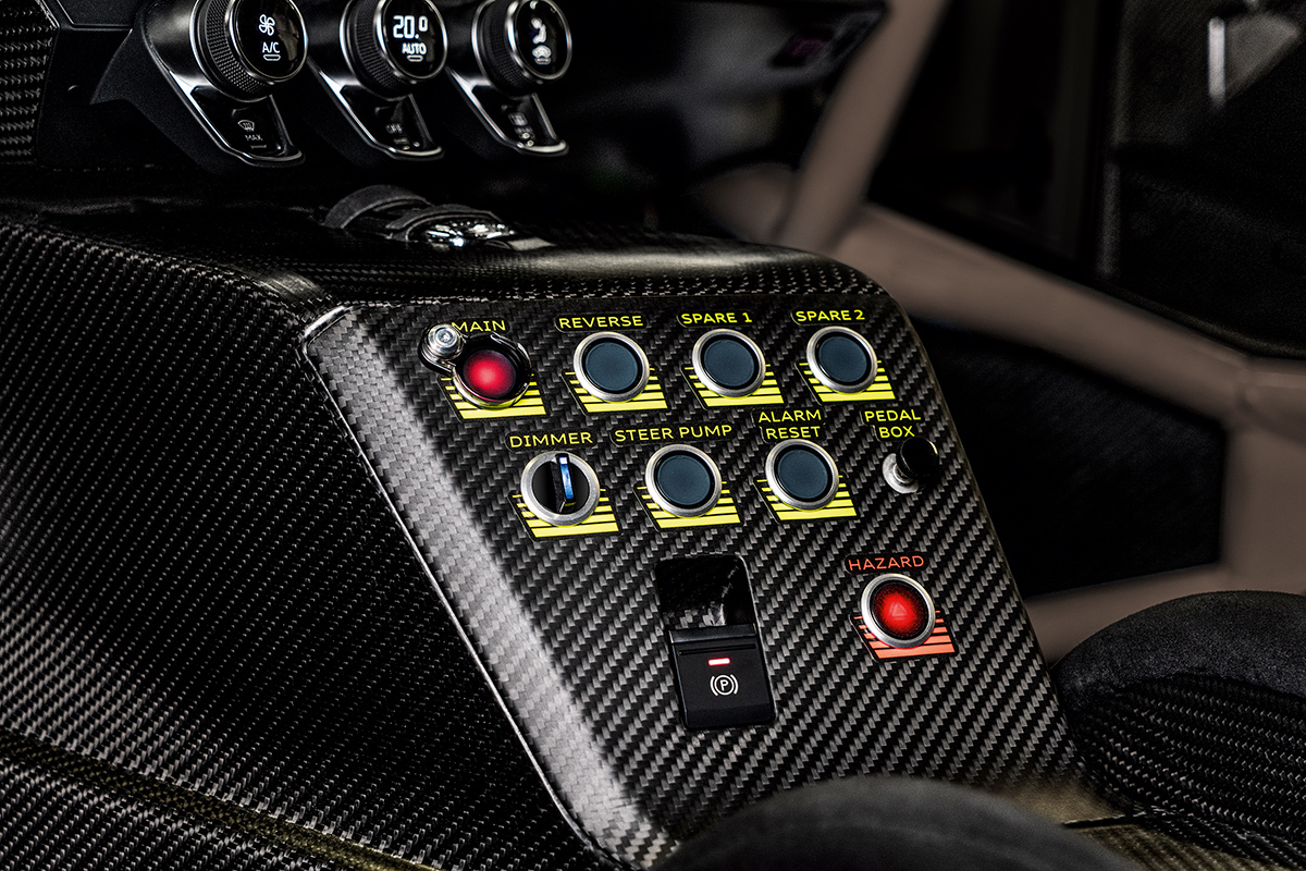 座艙中也幾乎維持與賽車相同的設計,尤其是直接沿用了賽車使用的多功能方向盤,僅多功能儀錶為符合日常使用,在顯示內容上做了修正,並且增加了手煞車、中控鎖與倒車顯影輔助系統與防盜裝置,以及配置電動調整後視鏡、空調與雙黃警示視燈等,同時XGT在包括安全、煞車與噪音等都符合了道路使用法規。