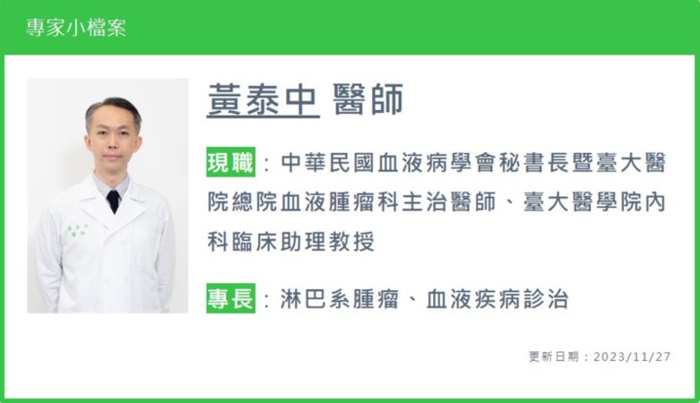 黃泰中醫師分享,過去就遇過多名60歲患者確診慢性淋巴性白血病後,檢測出具第17對短臂染色體缺失,原先受限於健保尚未開始給付標靶藥物,僅先進行化學治療,治療後成效有限、且出現免疫力低下,造成肺炎與泌尿道嚴重感染,後因為健保給付關係開始使用標靶藥物,因此減少感染、也逐漸穩定控制疾病,重拾生活品質。