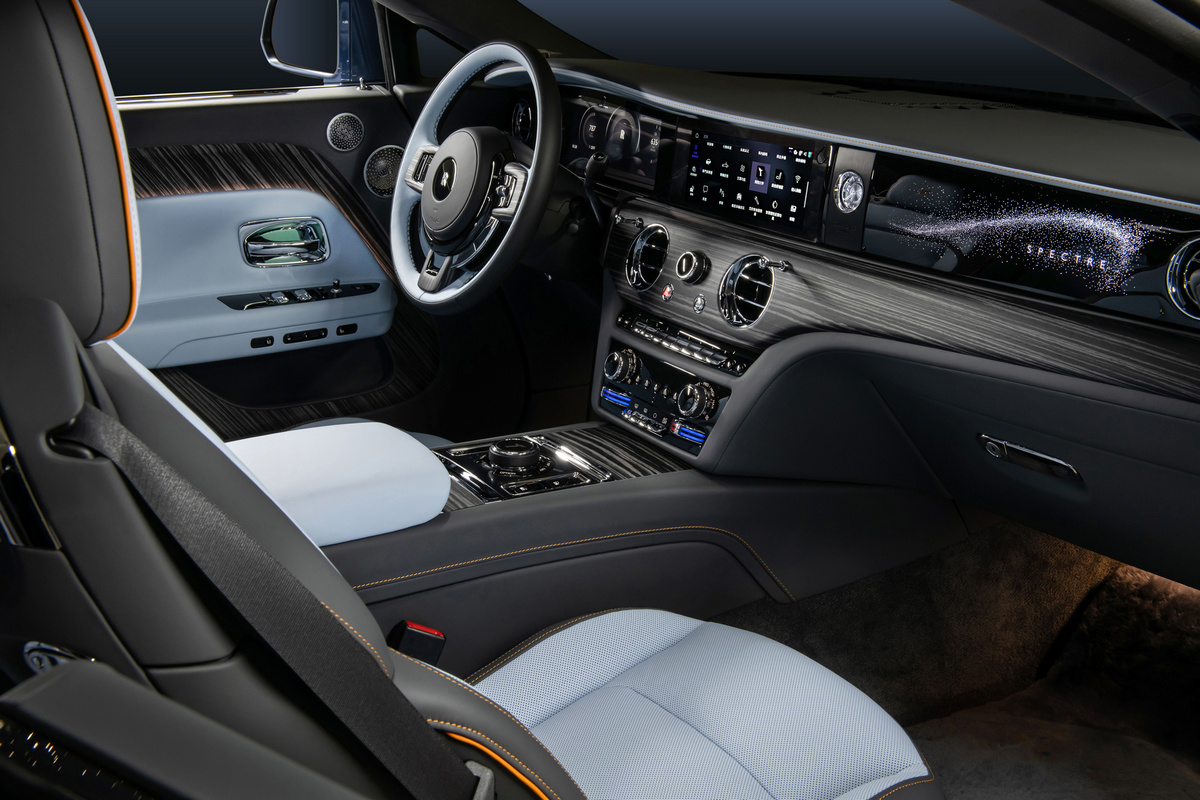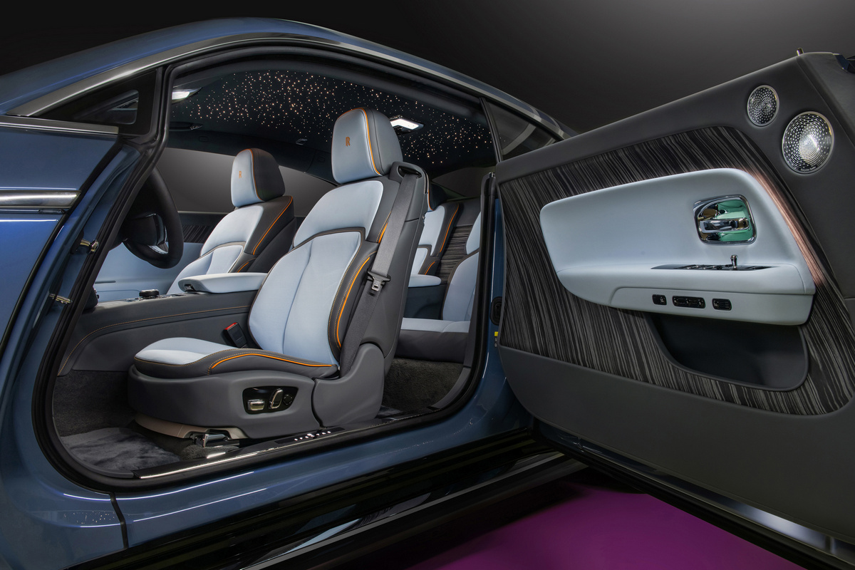 (Starlight Doors)的量產車型。該設計以4,796 顆柔和光點營造出璀璨星空。其車門可定製 Canadel 木質鑲板作為背板,Canadel 木質鑲板的命名源於法國南部的海灣,這裡曾是亨利·萊斯爵士 (Sir Henry Royce) 和設計團隊的冬季工作地點。