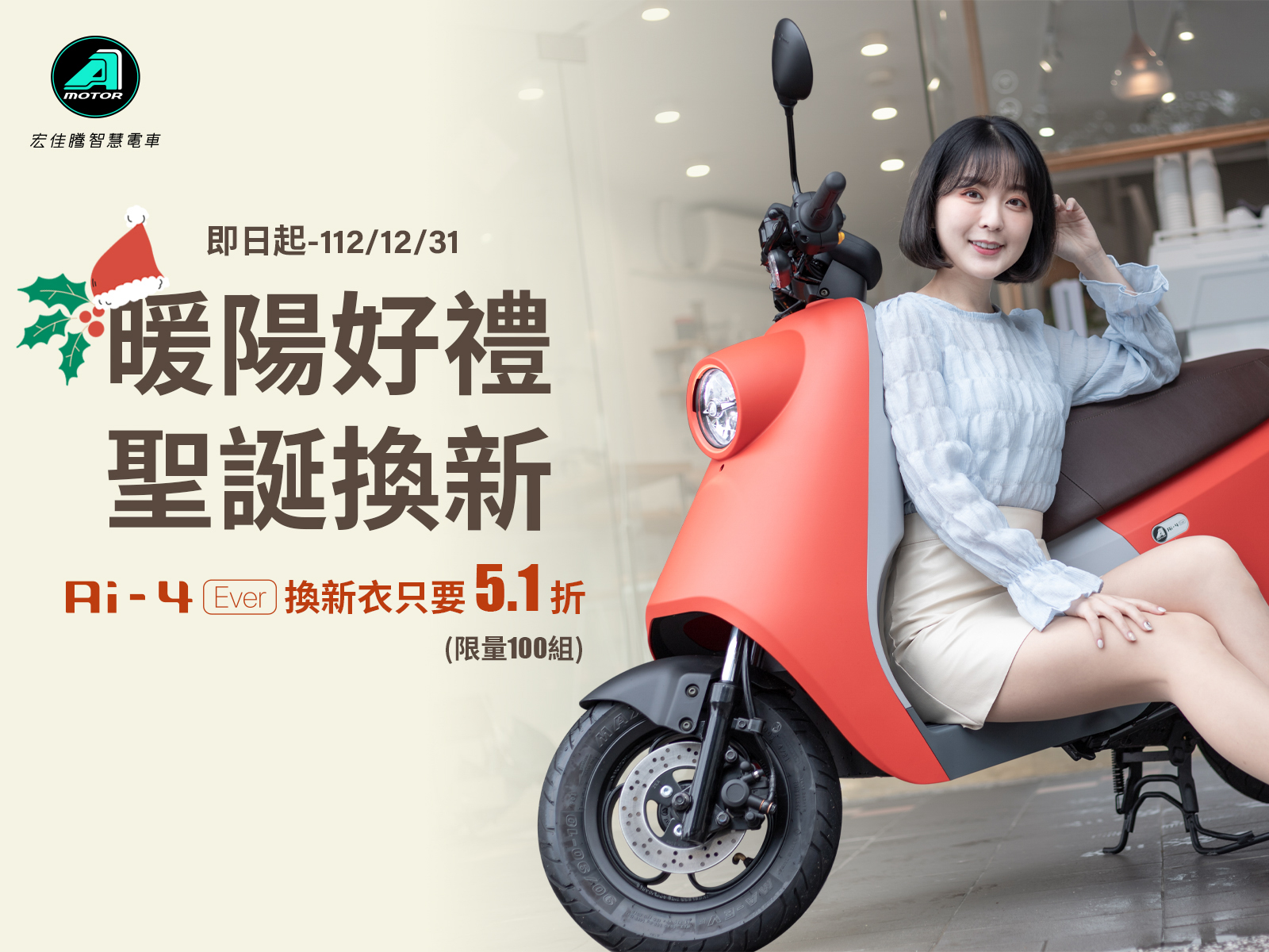 宏佳騰年終強檔優惠來襲,為慶祝25週年並迎接12月節慶季,宏佳騰推出多重優惠、精彩活動,包含油電全車系史無前例超大特惠、宏佳騰智慧電車試乘有禮、Ai-4 Ever暖陽紅車殼限時回歸、南台車展專屬優惠、JKS SHOP跨界聯名、老車主感恩回饋方案最後倒數。其中,宏佳騰智慧電車不只有全車系購車優惠,更提供來店的消費者限量試乘禮,由台灣知名南部在地Youtuber大蛇丸與宏佳騰聯手推出,凡於活動期間 (12月5日起-送完為止)至全台宏佳騰智慧電車門市試乘任一車款,即贈「限量蛇玩鑰匙開瓶器」,限量1000個,快到門市試乘、選購全新電車,蛇麼優惠都不容錯過。 此外,Ai-4 Ever暖陽紅車色回歸迎聖誕,即日起至12月31日,Ai-4 Ever車主購買並更換暖陽紅車殼即享優惠價$2,079元(含安裝工資,原價$4,093元),全台限量100組,用5.1折聖誕優惠將Ai車煥然一新。