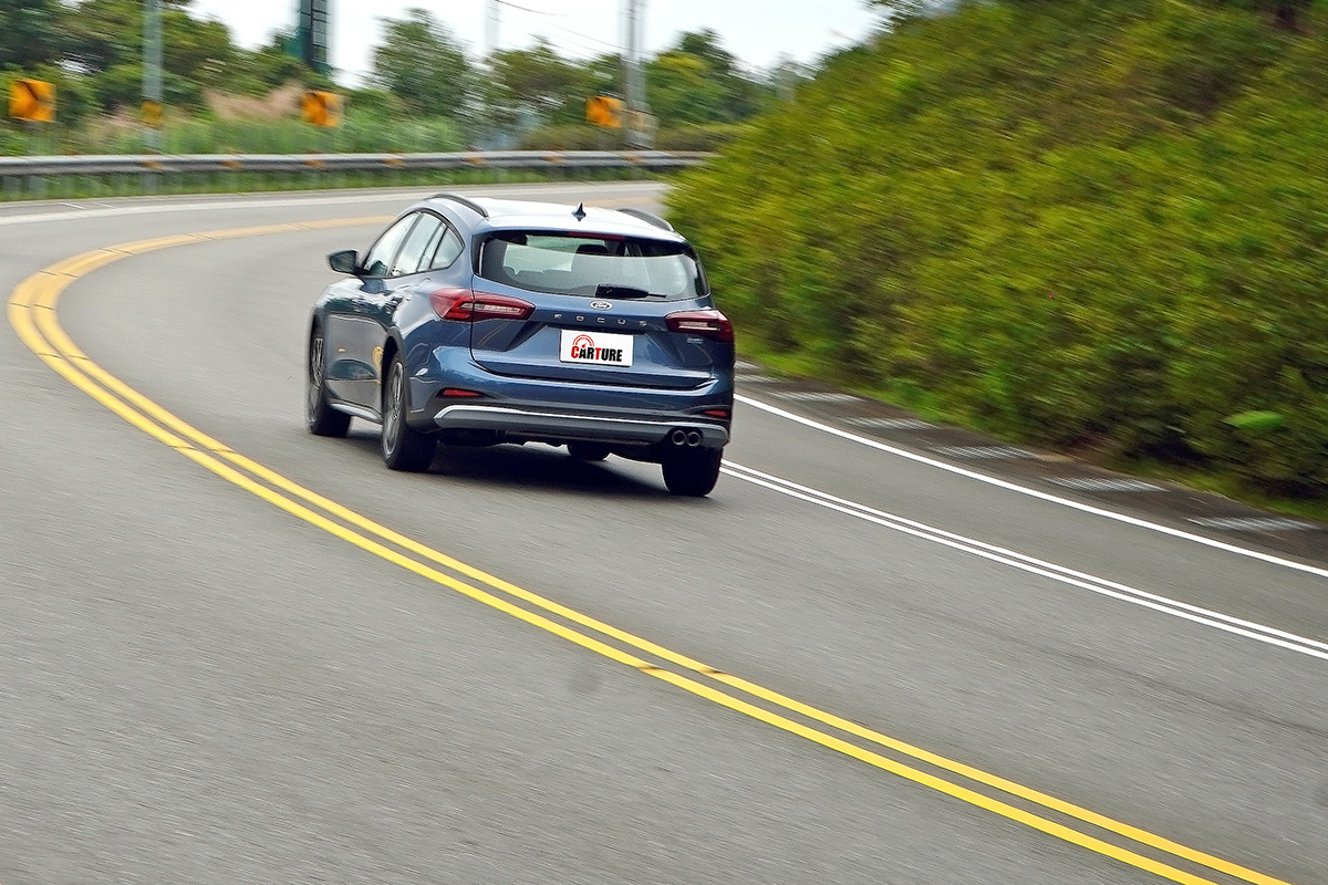 而一直以來Focus最讓人讚賞的就是在操控性的部分,在Focus Ative Wagon在原有的基礎下,依車格增加懸吊行程,而且也在原有懸吊硬體結構上,導入新世代德規減震筒,以及規EPAS電子式轉向輔助系統、EBB電子式煞車增壓輔助系統,整體駕駛感依然維持Focus一貫的轉向精準與可控性,同時路感依然清晰,給予駕駛者十足信信,不過避震器設定較掀背車型略軟一些,所以側傾也會比掀背車型明顯一點,但良好的支撐性,不會讓Focus Ative Wagon過彎時依然有著高度穩定性,而如此的設定,也增加了舒適性,更適合家庭買家使用,比起掀背車型的銳利感,Focus Ative Wagon多了一些韌度,包容性也更高。