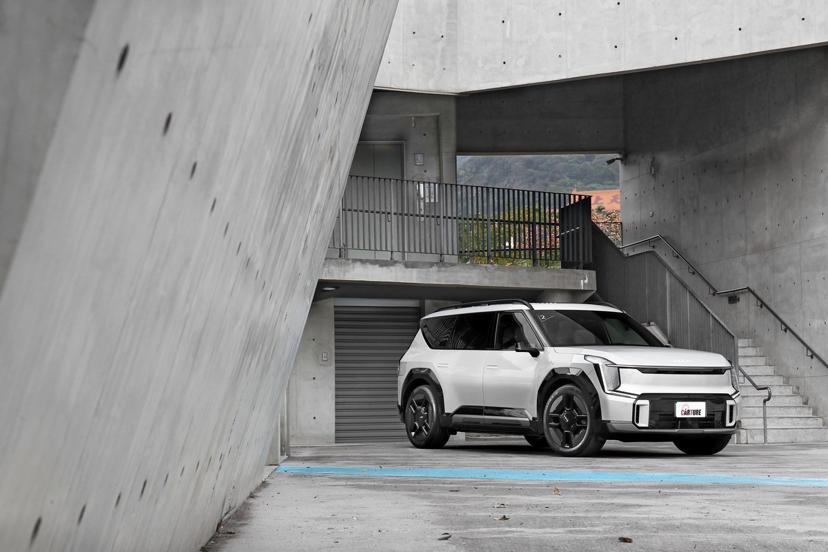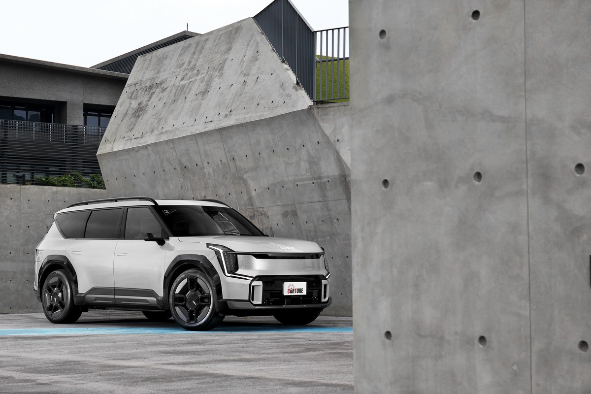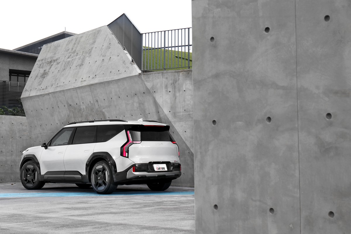 車長超過五米、車寬直逼兩米、車高也近一米八的Kia EV9,在風格強烈的剛毅輪廓下卻擁有僅僅0.28Cd的風阻係數簡直奇蹟。