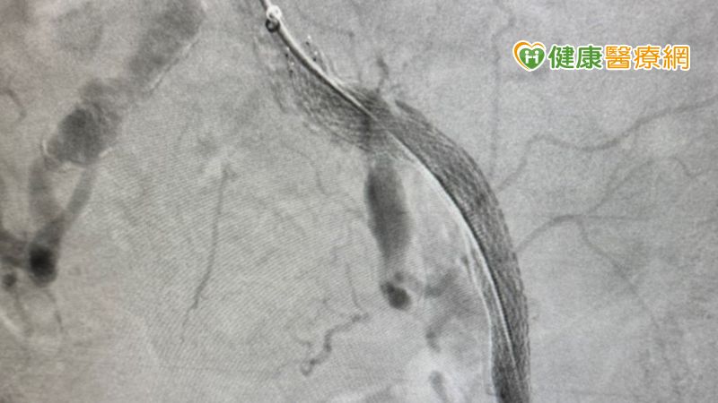 ▲朱新凱醫師表示,臨床上很常可以看到同一條血管多段堵塞的患者,醫師會評估最適合患者的治療方式(圖為使用支架放置術撐開血管)。