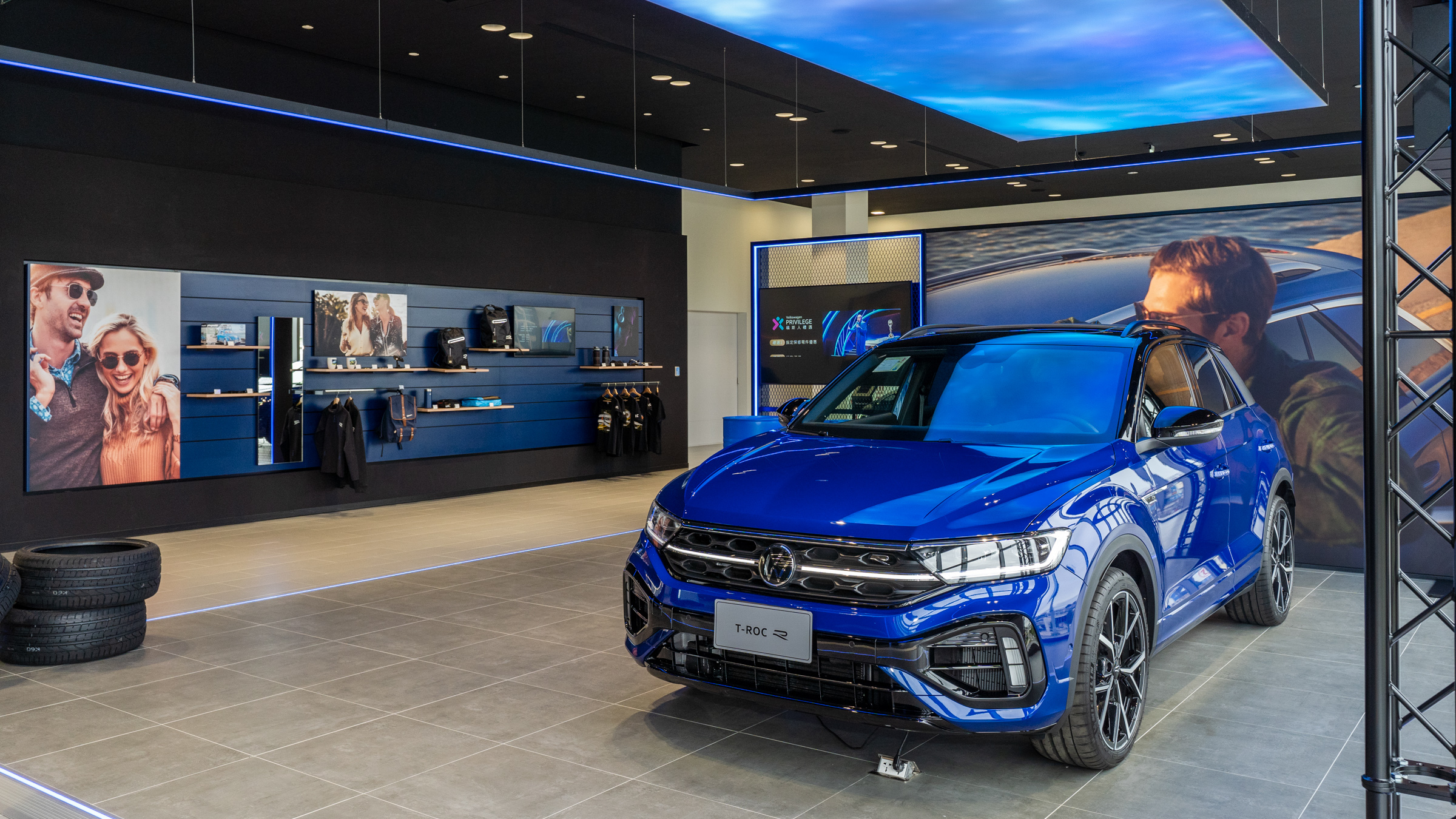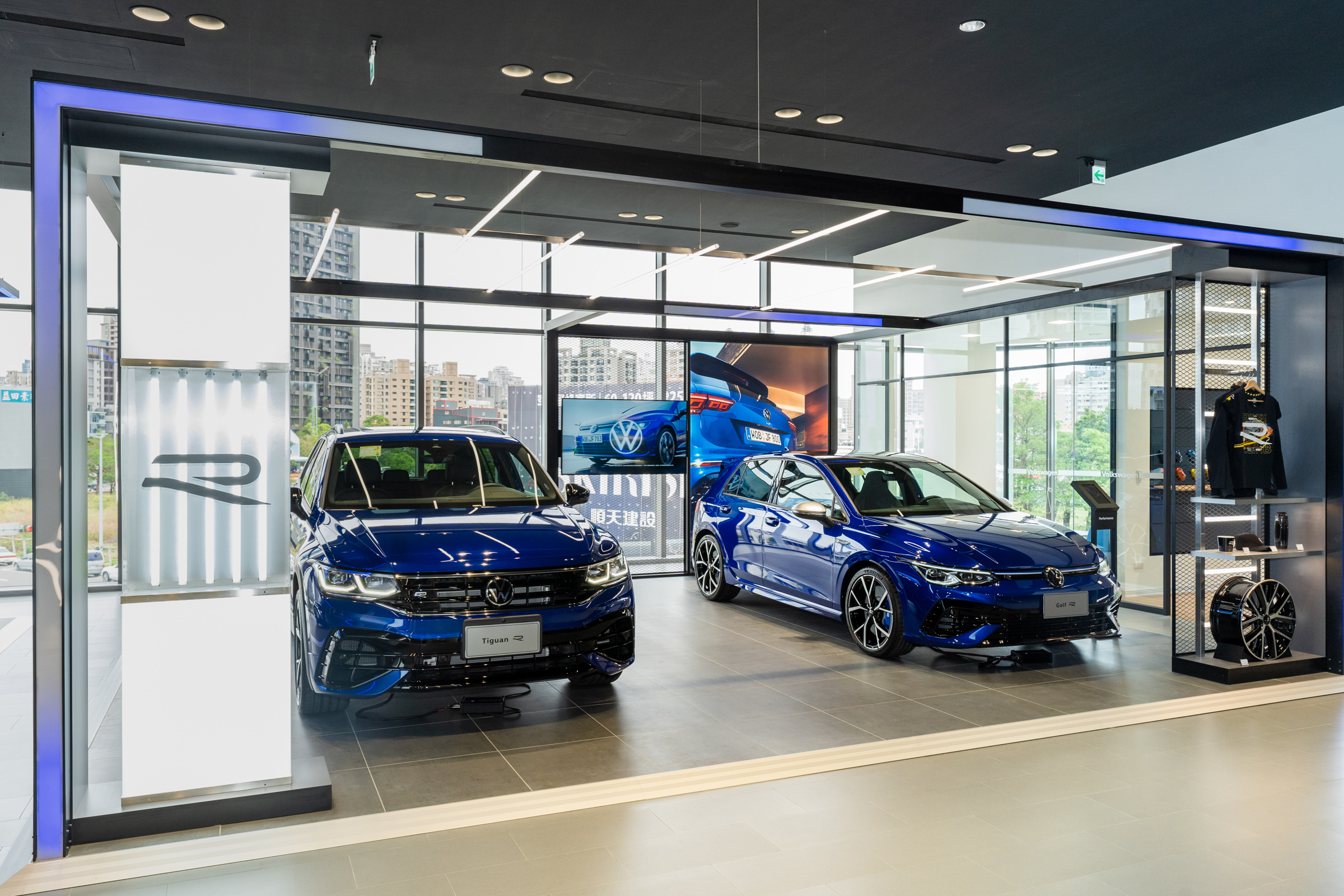 Volkswagen R車系在台銷售成績亮眼,截至今年九月的銷售已較去年度攀升21%,展現無人能及的產品實力,台灣福斯汽車特別於台北內湖、新北新莊、桃園中壢、新竹、台中五權、台中櫻花、台南永康以及高雄巨蛋,8間 Volkswagen展示中心設置專屬展區R Studio,以賽道為發想靈感、R專屬色金屬炫藍(Lapiz Blue)為主題色,展示性能R車款與R專屬精品,呈現媲美豪華品牌的賞車禮遇。