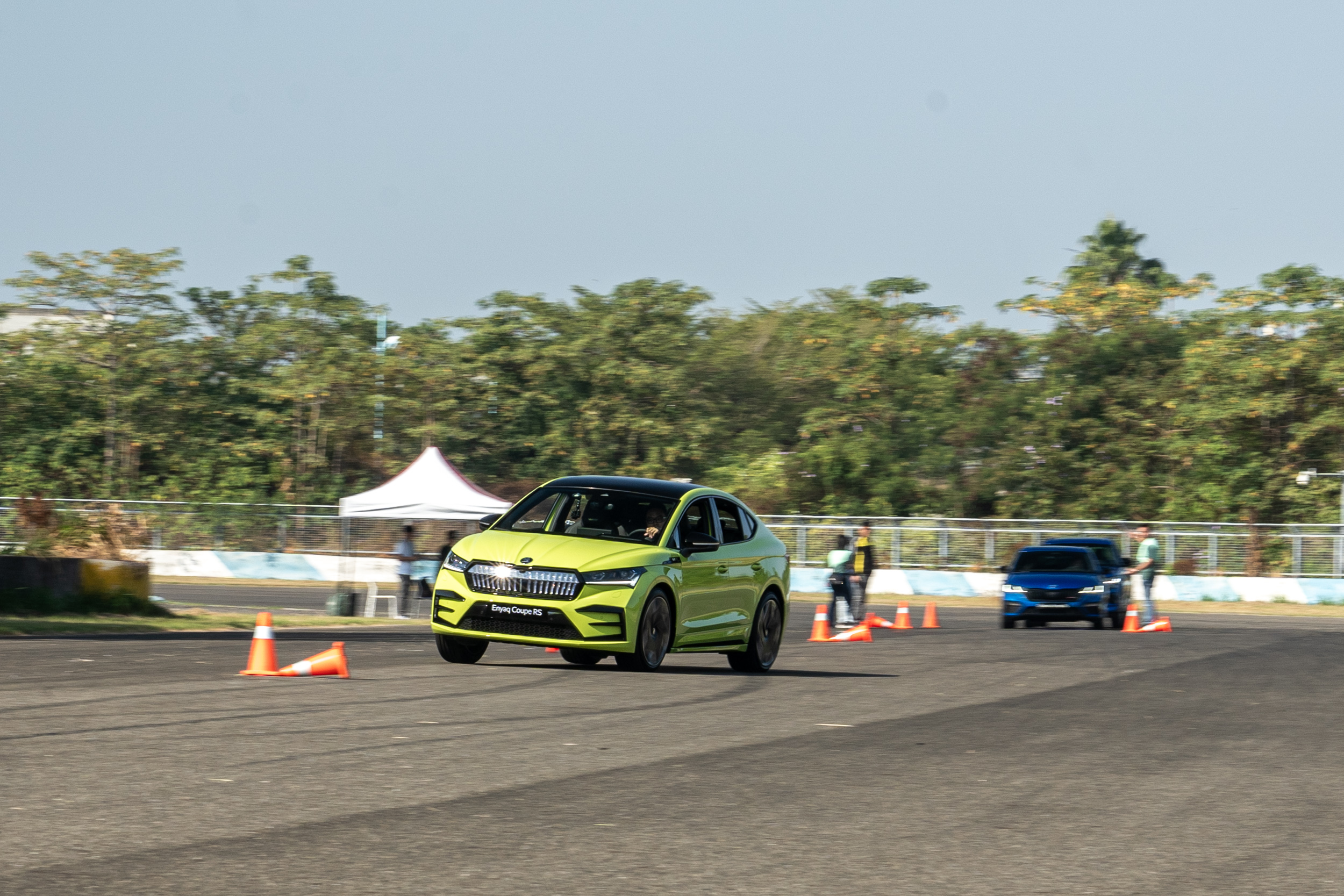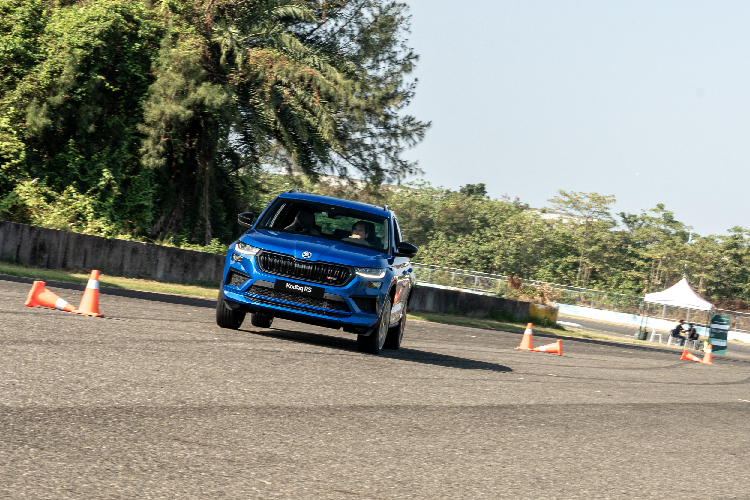 或許大家會覺得疑惑,同場不是還有一輛 Kodiaq RS 嗎?站在筆者的角度,其實我認為將一輛車身重心較高、且採長行程懸吊的七座 SUV 放到賽道上著實不公平。Kodiaq 作為一輛 5 + 2 大型休旅,本來就是要以既有的日常機能性為出發點來增添少許性能元素妝點,它的戰場絕對是在日常用途的都會、快速道路上,而非賽場,沒有過於硬派的操控,拿捏好與機能兩端的天秤比重,才是本車之所以會有魅力的真正原因。