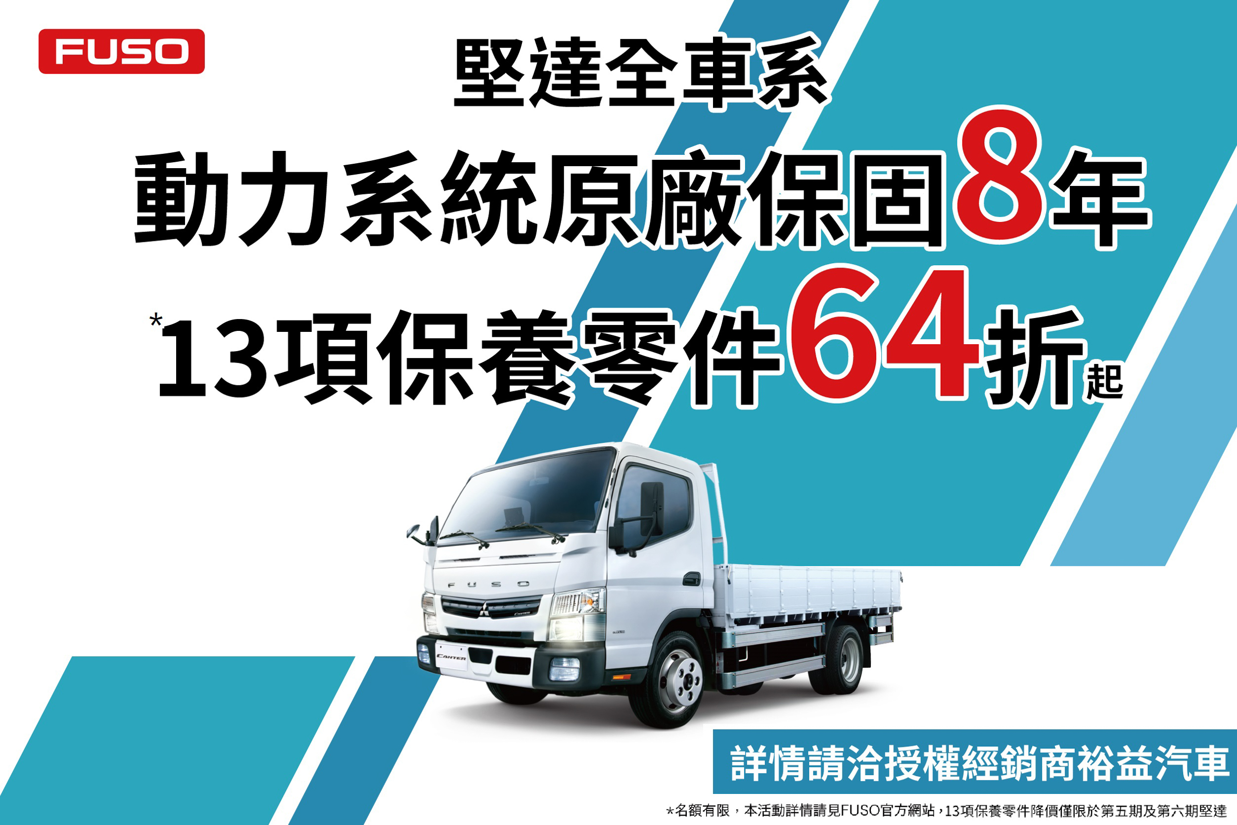 FUSO及Mercedes-Benz Trucks商用車台灣總代理「台灣戴姆勒亞洲商車股份有限公司」(以下簡稱 DTAT)長期深耕台灣市場,為提供車主和頭家最完善的售後服務,並守護車主行車安全,不只長期投注研發高品質且多樣化的車用零件,並擁有同級商用車品牌最多的服務據點,更定期培訓專業的原廠技師,滿足車輛不同階段的維修需求。在年末時節,為了感謝客戶長久支持,於2023年12月20日起至2024年2月10日止,推出「FUSO商用車-歲末迎新健檢活動」,只要至全台裕益汽車營業/服務據點,即可由專業原廠技師為車輛進行「26項免費全車安心檢查」,包含動力系統、冷卻系統、尿素系統、底盤系統、輪胎系統;並針對五期、六期堅達全車系提供「13項保養零件更換」最高64折優惠,有效降低養護成本、兼顧經濟效益性,讓DTAT陪伴全台頭家一起安心駛向嶄新的2024年!