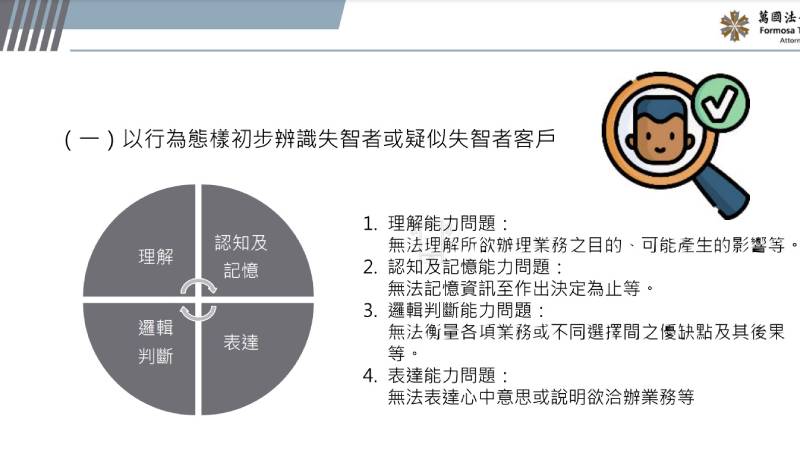 (—)瞭解失智者或疑似失智者(二)銀行人員失智金融友善教育訓練