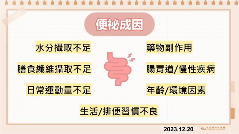 ▲▼便祕成因與常見瀉劑種類。(食藥署提供)