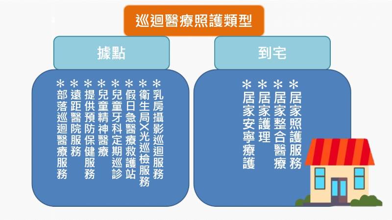 林慶豐表示,衛福部所屬26家醫院111年服務已達147,128人次、112年1-10月服務亦達136,903人次,致力於提供多元的在地醫療服務。民眾除了到院就診外,部分社區位處交通不便處,也提供據點巡迴醫療或是到宅的照護模式,包括: