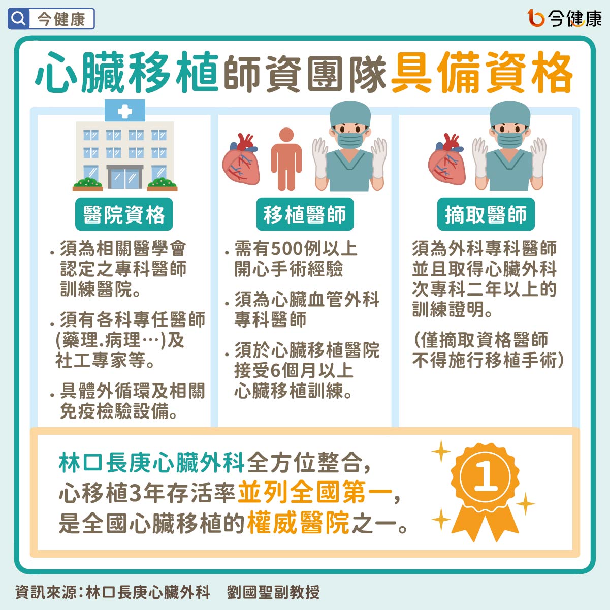 此外執行移植手術的醫師也很重要,在台灣必須有開心手術500例以上的經驗,才能申請心臟移植醫師的資格。