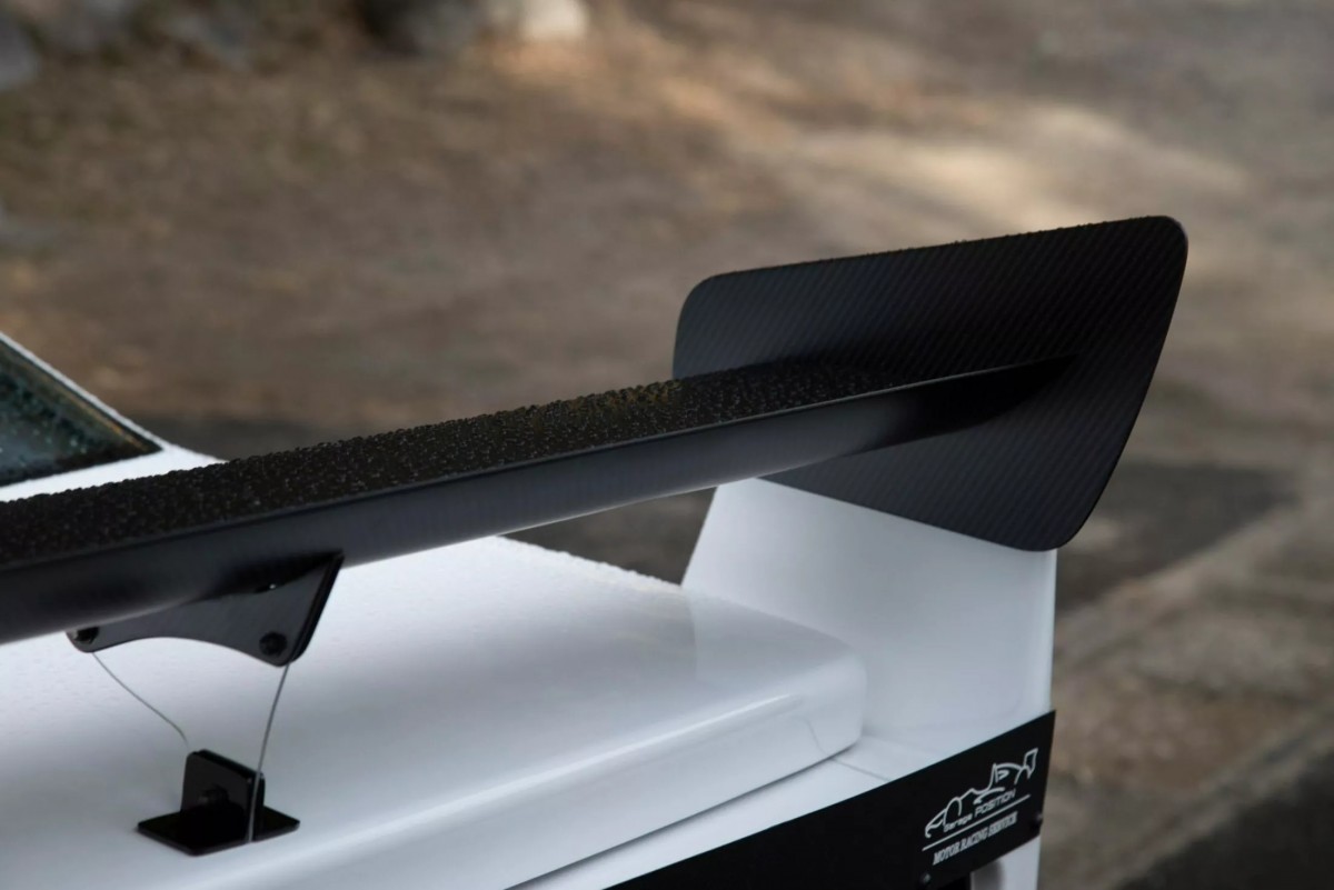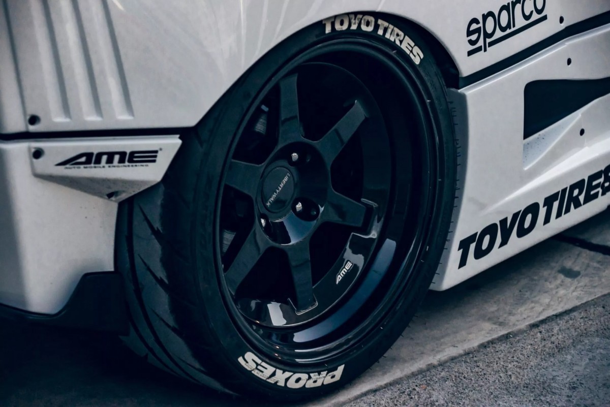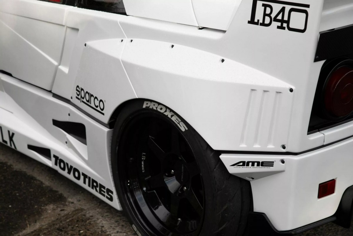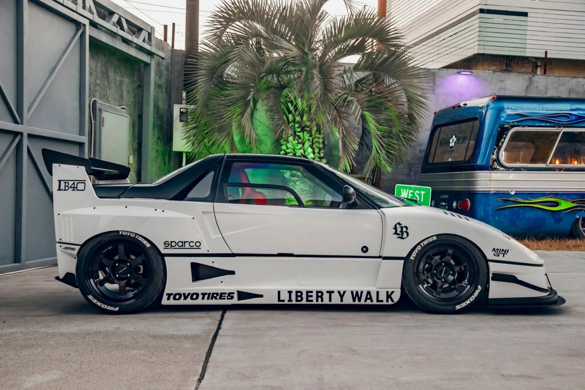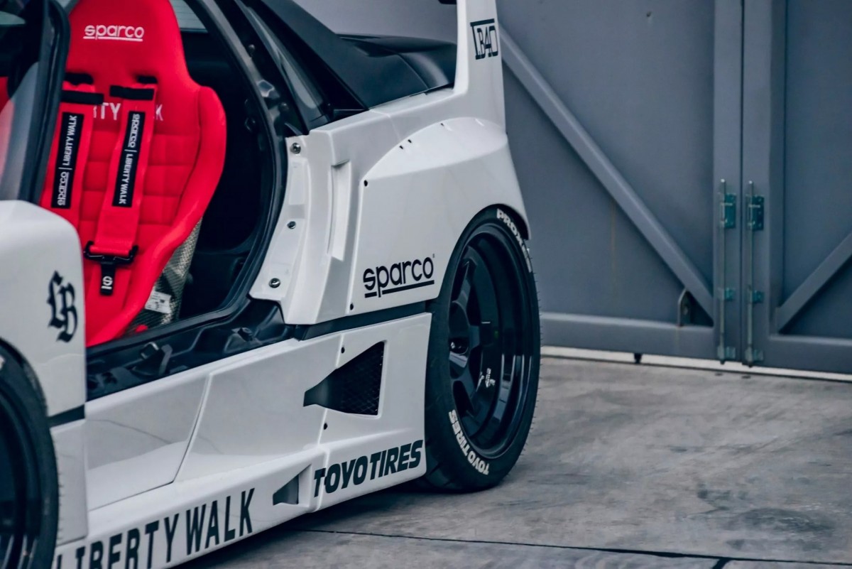 基本上如果你認識Autozam AZ-1的話,這輛車還是多多少少看得出他的影子,Liberty Walk重新設計了大部分的外觀套件,只有車門、擋風玻璃、後窗、側窗、車頂、後方引擎蓋以及車體結構是原本的車輛,剩餘部分都已經進行改造,而前方的更動應該是最為成功的,其頭燈設計零改就是來自於F40 LM,當然車輛也擁有了外擴的輪拱以及超大尾翼,不過三個排氣尾管看起來有點小,而輪圈部分配置前16吋、後17吋的輪圈,搭配Toyo輪胎其實也是一大看點,動力部分則是來自Suzuki的657cc中置渦輪增壓引擎,擁有64匹(PS)最大馬力,目前這輛車的FRP套件要價約台幣71.3萬,而且這還不還頭燈以及鍛造輪圈,因此你看到的是一輛很昂貴的Kcar。