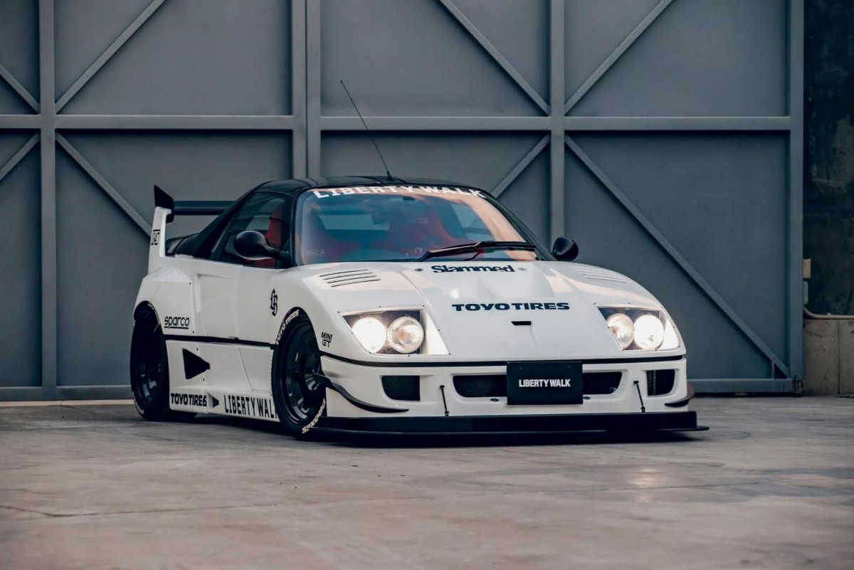 在今年的東京改裝車展上,知名日本改裝大廠Liberty Walk除了打造了一輛寬體的Lamborghini Countach之外,現場還有一輛超級可愛的Ferrari法拉利F40跑車,這輛車有著法拉利的外觀特色,但是體積與比例硬是小了一截,因為這是他們使用Autozam AZ-1輕型Kcar所打造的車輛,而動力部分也不是非常強大。