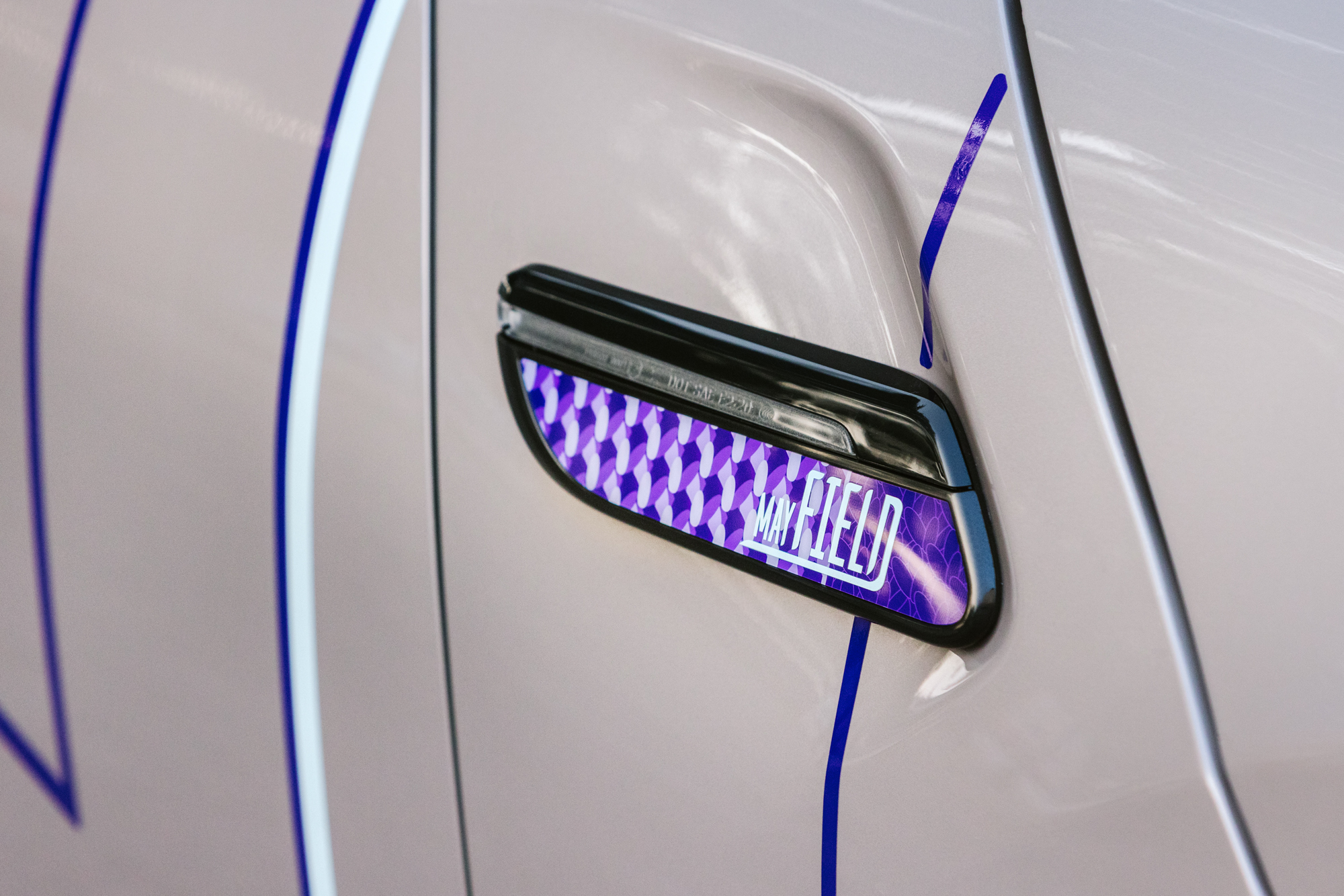 MINI Mayfield Edition配置的兩種車型分別選用了不同的主色調,MINI Cooper S 3-Door以Enigmatic Black呈現低調高貴的神秘感,而MINI Cooper 5-Door則提供了Nanuq White / Rooftop Grey / Midnight Black三款車色選擇(限量),搭配紫色調設計,每種搭配皆可呈現高雅氛圍。MINI Mayfield Edition的車側與車頭處,均可見MINI品牌源流的英國國旗飾條,細看17吋Pedal Spoke Black輪圈的中心,則嵌上了薰衣草花瓣的懸浮定軸輪圈蓋,讓行進過程彷彿如紫蝶優雅的舞姿。最後在車頭正視角下,MINI Mayfield Edition限定的車頭徽飾,以及專屬鑰匙蓋上的標緻Mayfield字樣,皆展現出MINI Mayfield Edition別出心裁的設計語彙。
