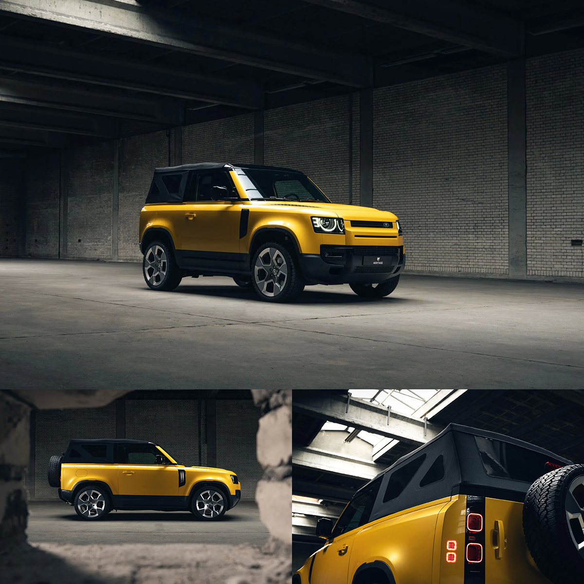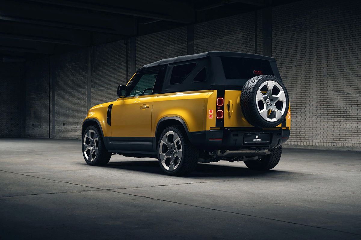 過去初代Defender擁有豐富的車型陣容,現行款則只有90、110 和更大的130;不過Heritage Custom以Defender 90為基礎改裝,取消了A柱之後的車頂與D柱,換上了電動敞篷,但為了安全,還是裝配了防滾籠。