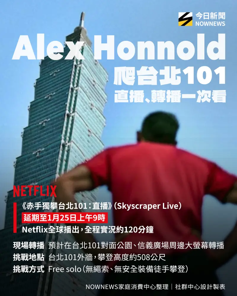 ▲霍諾德爬台北101,直播、轉播資訊一次看。(圖/NOWNEWS社群中心製)