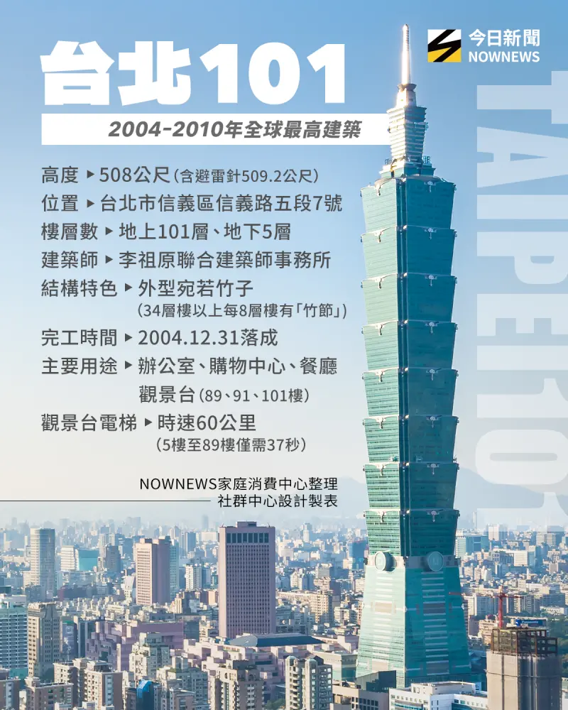 ▲霍諾德1月25日攀登台北101大樓,台北101 大樓(Taipei 101)小檔案一覽。(圖/NOWNEWS社群中心製)