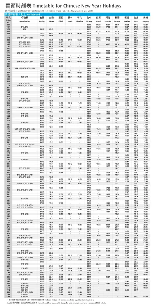 🟡2026春節高鐵延後收班、提早發車班次與時刻表:https://www.thsrc.com.tw/Attachment/
