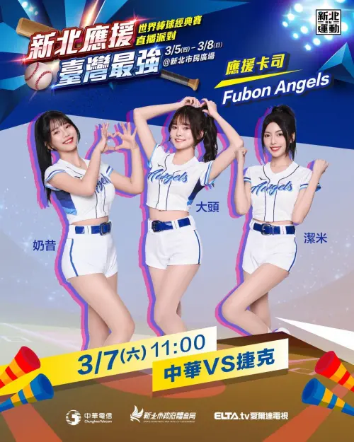 2026 年世界棒球經典賽(World Baseball Classic,簡稱 WBC)將在 3 月 5 日盛大開打,中華隊承載著全台灣棒球迷的希望,即將在預賽 C 組對決日本、韓國等勁敵,爭取晉級複賽的門票。對此,新北市政府特別在板橋新北市民廣場,連續 4 天舉辦直播派對,更邀請熱血主播徐展元、Fubon Angels 啦啦隊成員到場,與球迷一同熱血吶喊,為中華隊選手加油打氣!