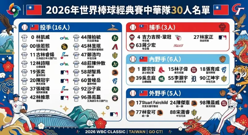 ▲WBC中華隊今日公布30人最後名單。(圖/Gemini製圖/記者黃建霖監製) 2026年世界棒球經典觀戰重點