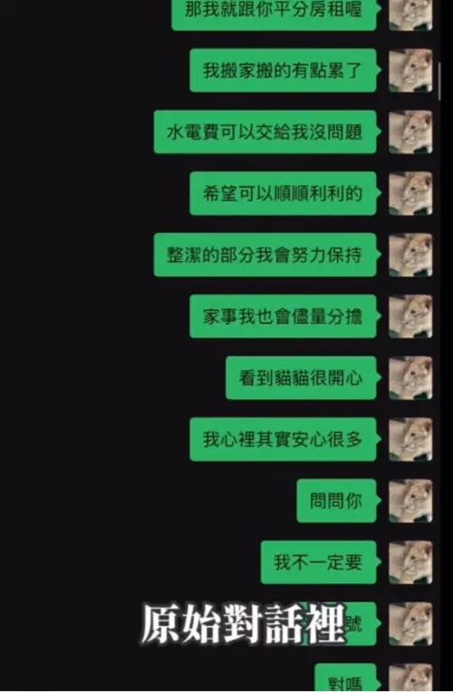 朱宇謀今稍早po影片表示,與林倪安是認識20多年的大學同學,去(2025)年9月開始有密切往來,後來雙方協議以室友的身分同住並且共同分擔房租,「我們並非是林倪安在新聞爆料中所說的男女交往關係,後來我們的相處也開始出現許多摩擦,其中一個很大的原因,就是因為雙方對這段關係、還有住在一起的界線,理解一直不太一樣。」指控林倪安,頻繁要求報備到家。